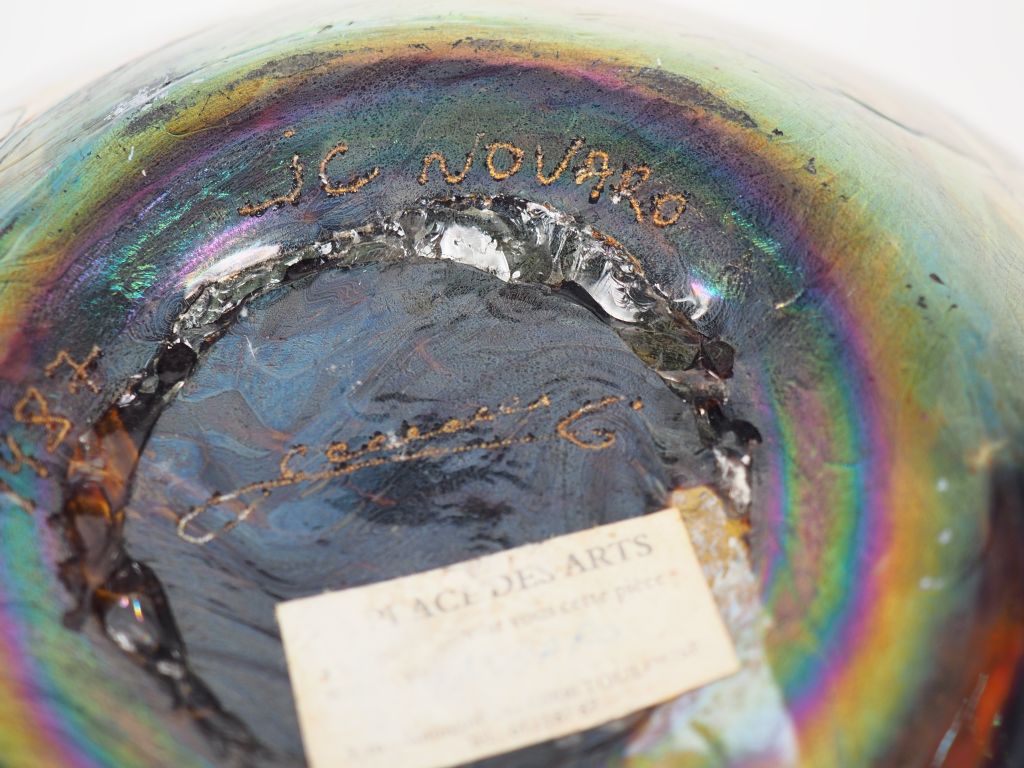 Lot de Jean Claude NOVARO. Grand vase ovoide en verre polychrome. Signé et da au prix de 150 à 200 € en vente aux enchères par l'hôtel des ventes Primardeco