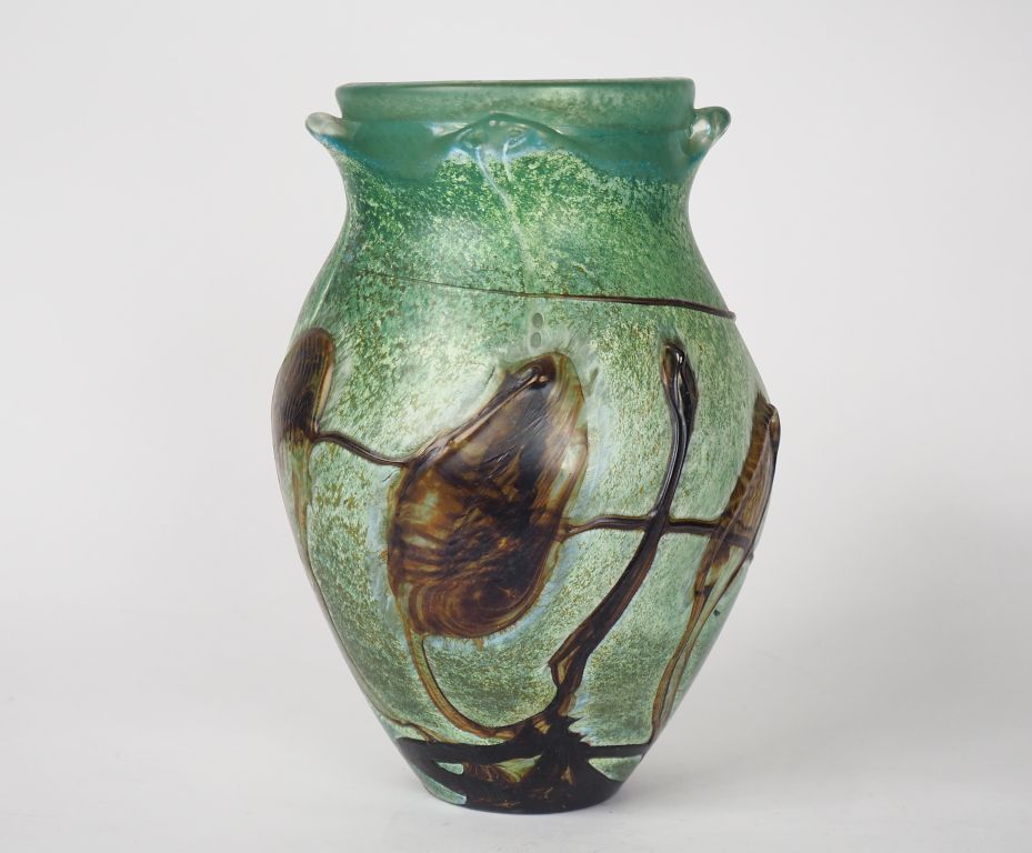 Jean Claude NOVARO. Vase en pâte de verre à décor multicouche polychrome. Signé et daté 1990. H. 32,5 cm.