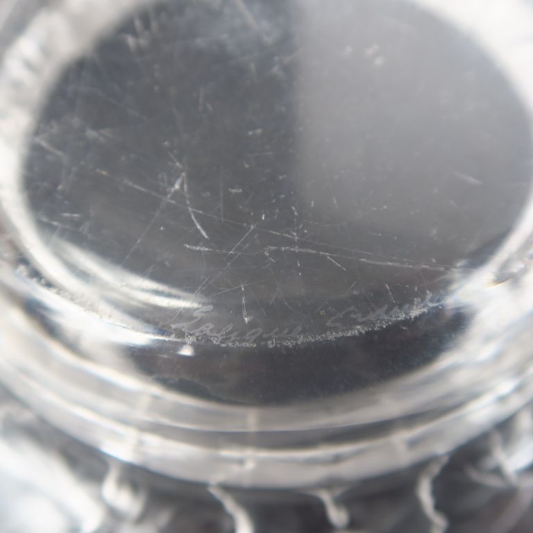 LALIQUE France. "Honfleur". Coupe en verre moulé pressé. Signée. Diam...