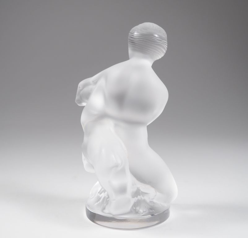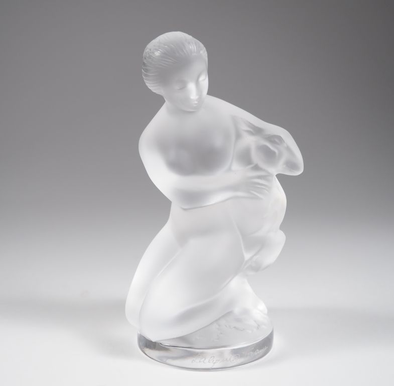 LALIQUE France. "jeune fille à la chèvre" Sculpture en cristal moulé Signée H. 12 cm