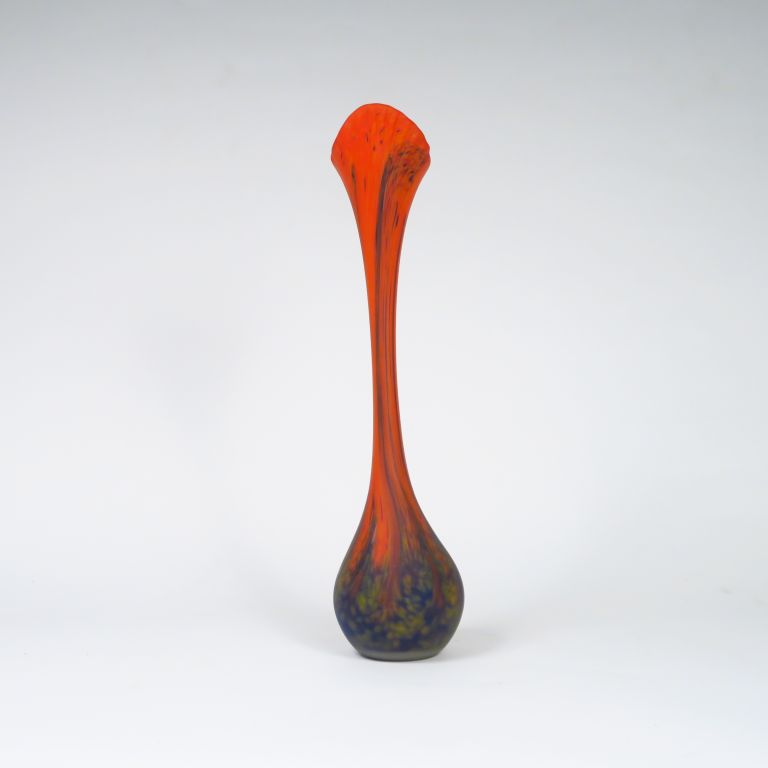 LE VERRE FRANCAIS. Grand vase soliflore en verre poudré orange, bleu et jaune. Signé. H. : 48,5 cm.