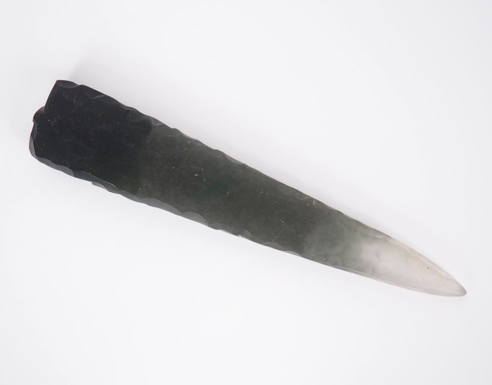 NANCY France. Presse papier en pâte de verre brune en forme de hache préhistorique. L. 35 cm (petite égrenure)
