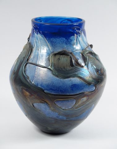 NOVARO. Grand vase ovoide en verre polychrome. H. : 37cm. Signé et daté 1981.