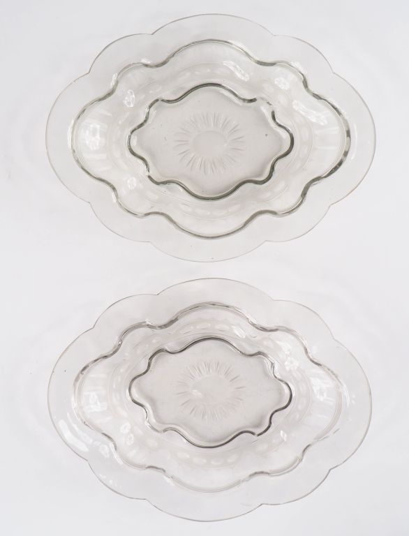 Lot de Paire de plats ovales en verre soufflé XVIIIème, décor à la marguerite au prix de 600 à 700 € en vente aux enchères par l'hôtel des ventes Primardeco