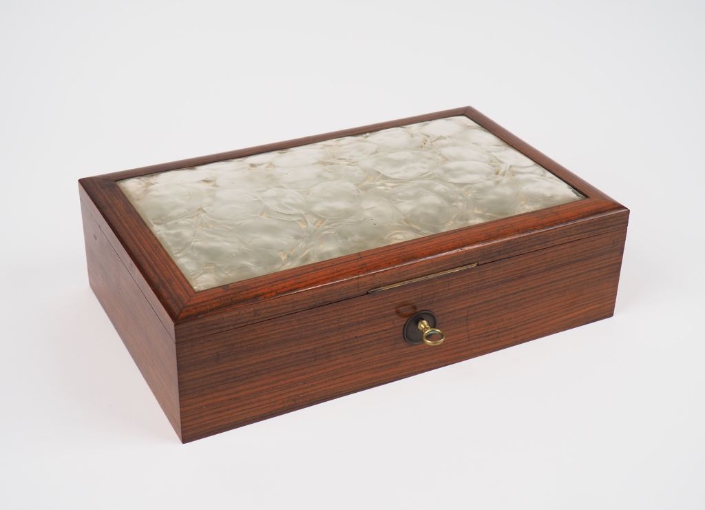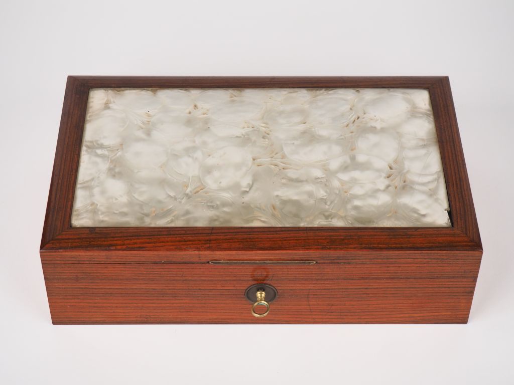 Lot de R. LALIQUE. Coffret "monnaie du pape" Signé, (égrenures à deux angles, au prix de 1000 à 1300 € en vente aux enchères par l'hôtel des ventes Primardeco