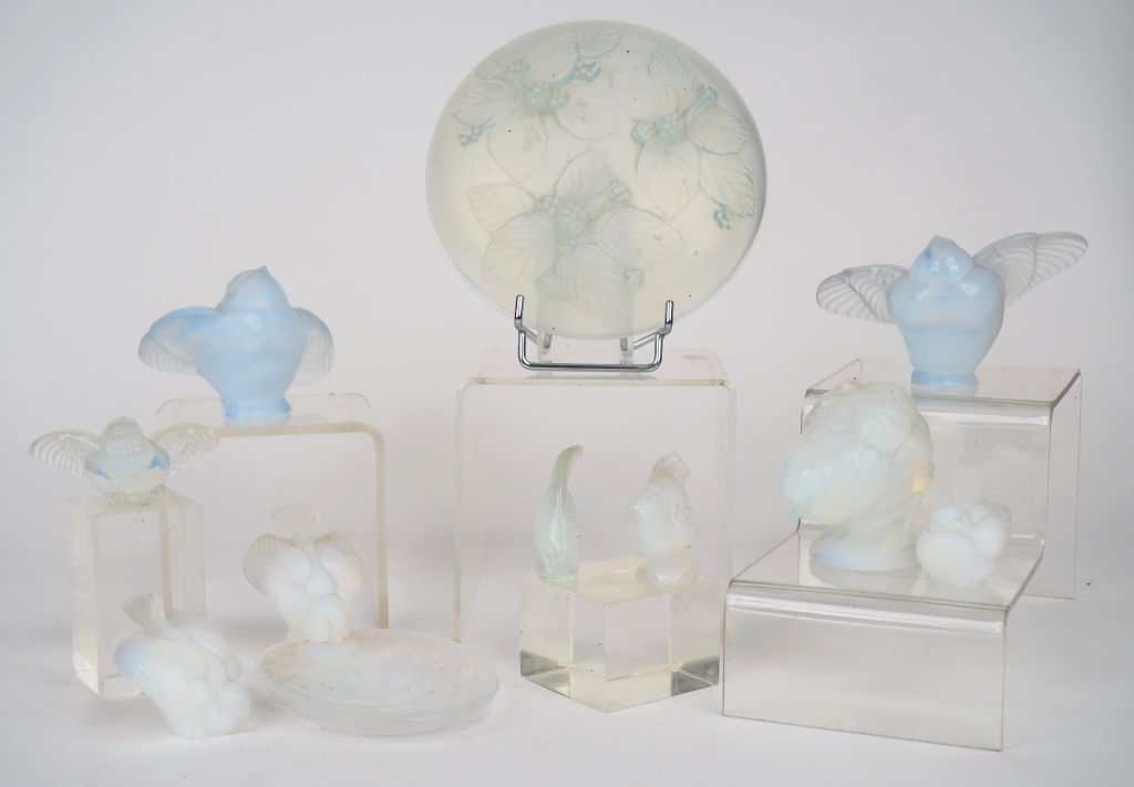 Lot de SABINO. Dix différents sujets en verre opalescent. Signés au prix de 400 à 600 € en vente aux enchères par l'hôtel des ventes Primardeco