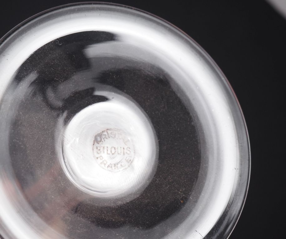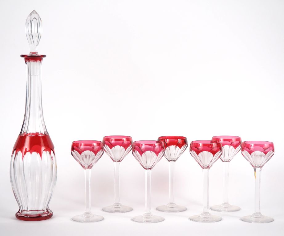 SAINT LOUIS. Service à liqueur en cristal bicolore comprenant : un flacon et sept verres à liqueur. Signé.