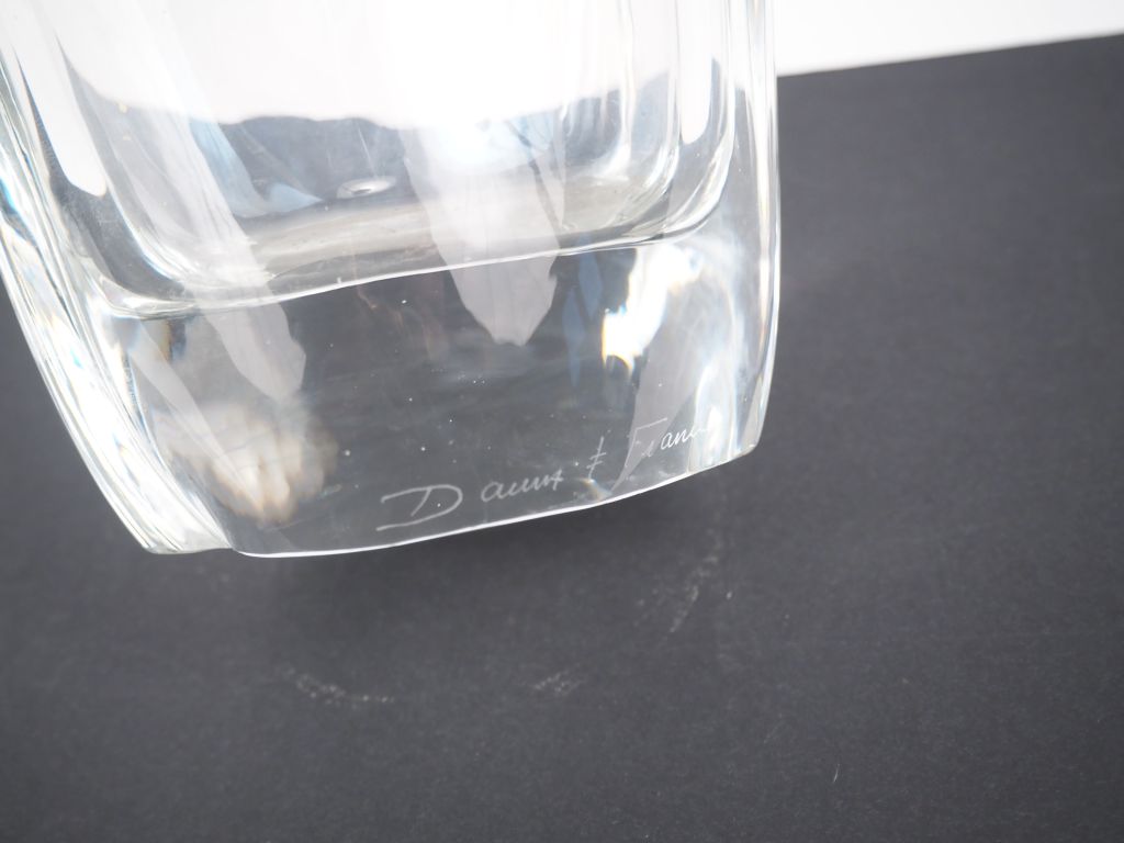 SAINT LOUIS. Vase de forme "Médicis" en cristal taillé. Signé. H. 19 cm. On y joint : DAUM France. Vase en cristal. Signé. H. 24 cm.