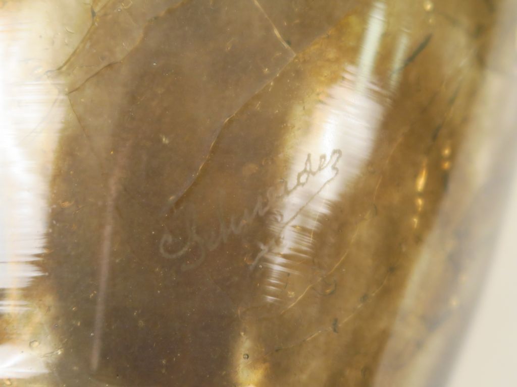 Lot de SCHNEIDER. Vase ovoïde en verre fumé craquelé. Signé. H. 30 cm au prix de 200 à 300 € en vente aux enchères par l'hôtel des ventes Primardeco