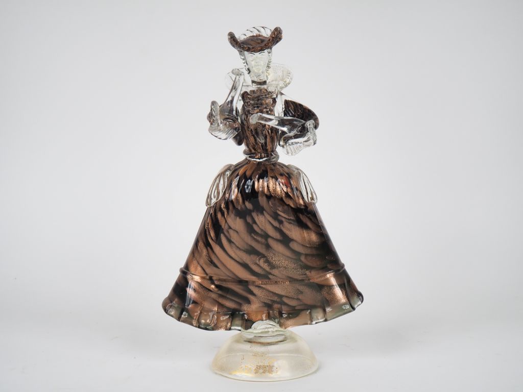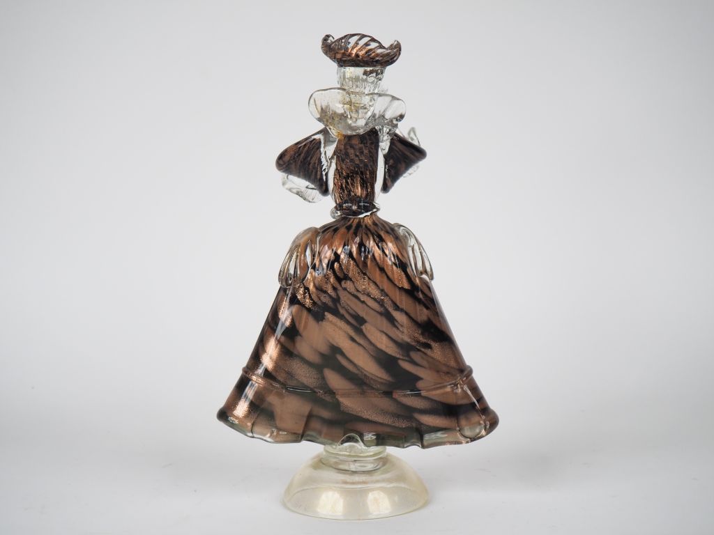 Sculpture en verre polychrome de Venise "personnage de carnaval". H. 3...