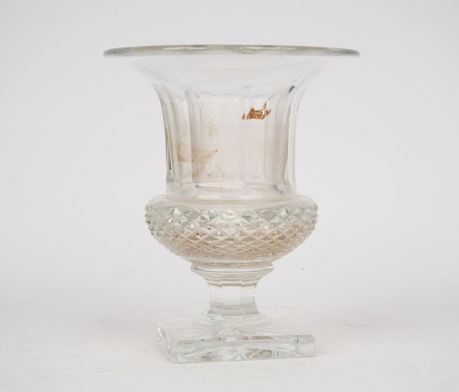 ST LOUIS. Vase Médicis en cristal taillé à décor de croisillons. H. 24,3 cm.