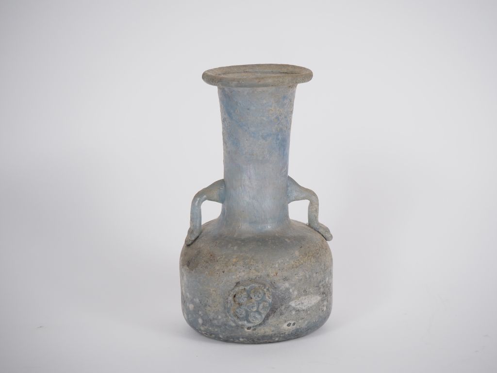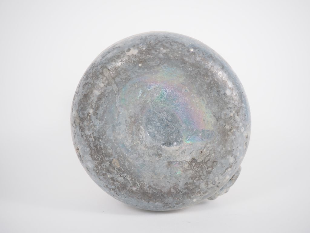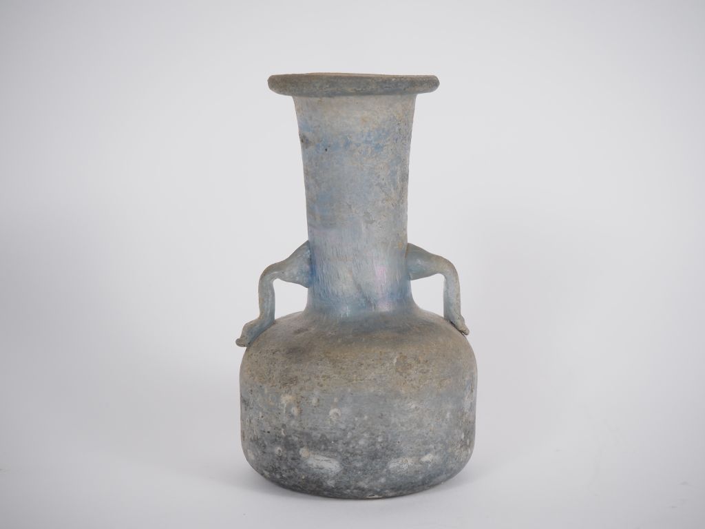 Vase en verre soufflé bleu de style antique à reflets irisés. H. 17,5 cm. Expert : Jean-Sylvain Caillou, EI.