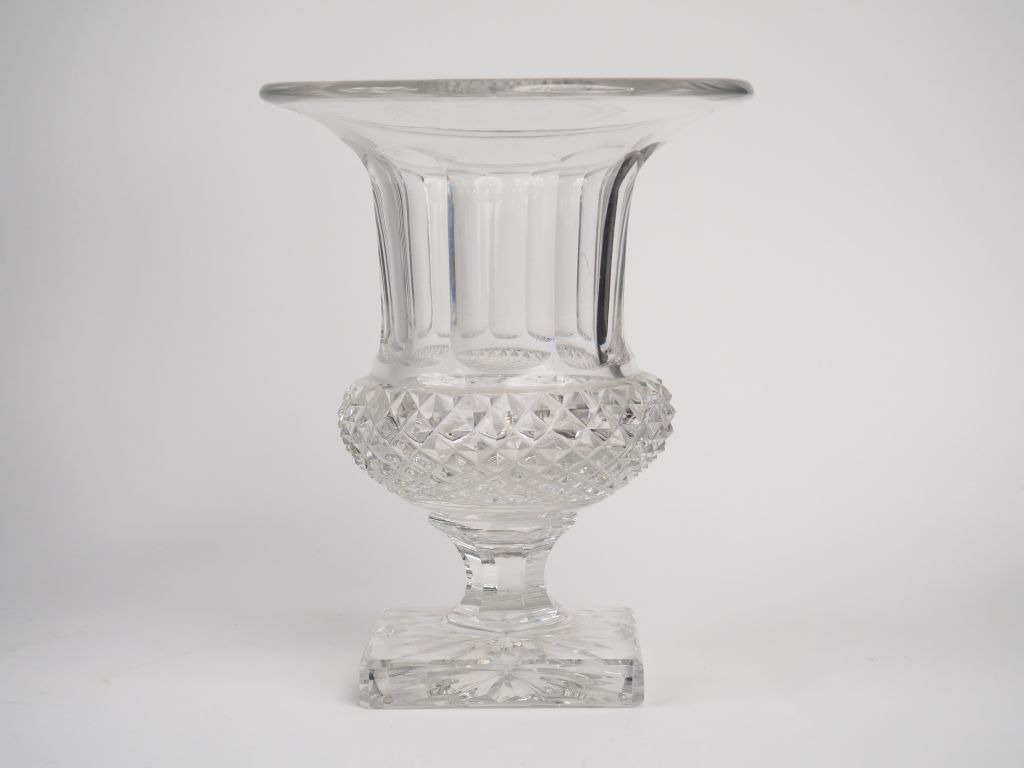 Vase Médicis en cristal à décor de croisillons. H. 25 cm.