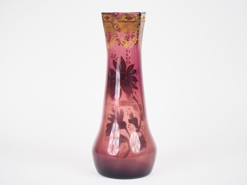 Lot de Vase Napoléon III en verre mauve à décor émaillé de fleurs polychromes au prix de 40 à 60 € en vente aux enchères par l'hôtel des ventes Primardeco