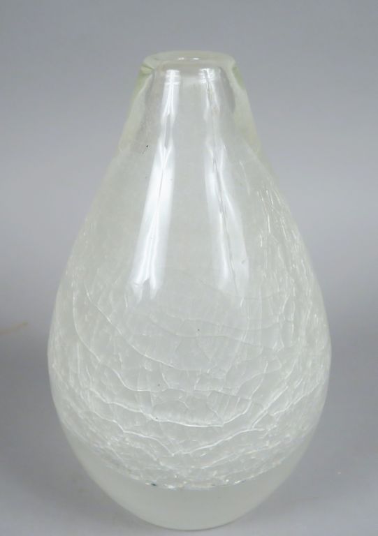 Vase ovoïde en verre soufflé, à décor craquelé en camaïeu blanc. H. 2...