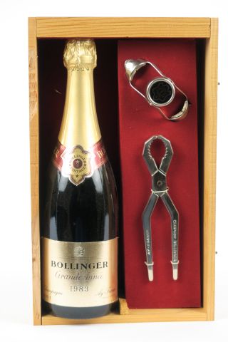 Lot de 1 BOUTEILLE CHAMPAGNE BOLLINGER GRANDE ANNEE - 1983 - COFFRET au prix de 100 à 110 € en vente aux enchères par l'hôtel des ventes Primardeco