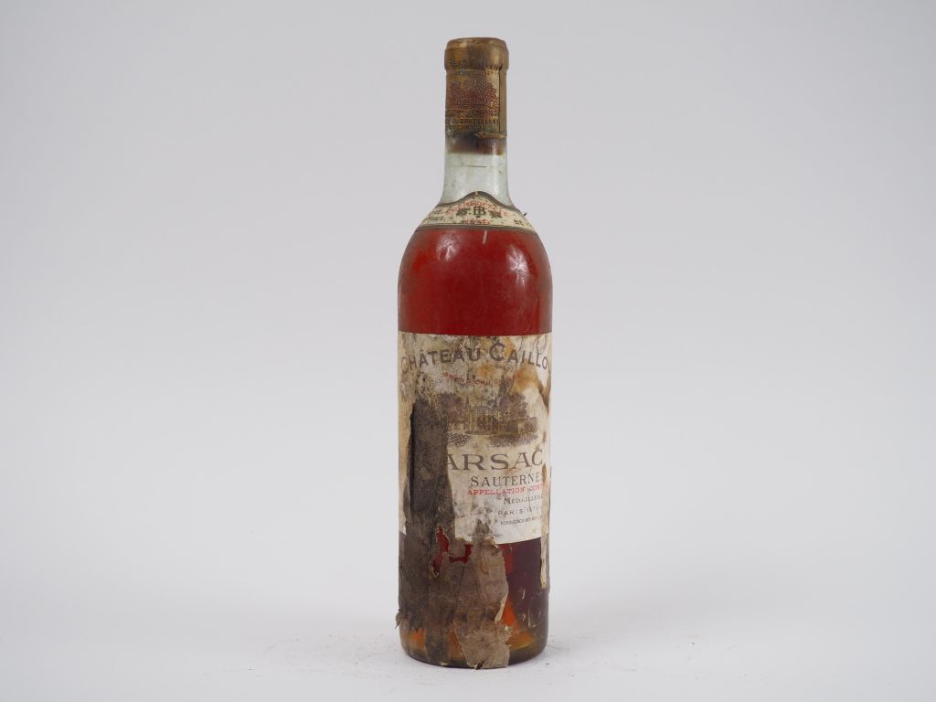 Lot de 1 BOUTEILLE CHÂTEAU CAILLOU 'CRÈME DE TÊTE' SAUTERNES - 1959 - LB/ET au prix de 60 à 80 € en vente aux enchères par l'hôtel des ventes Primardeco
