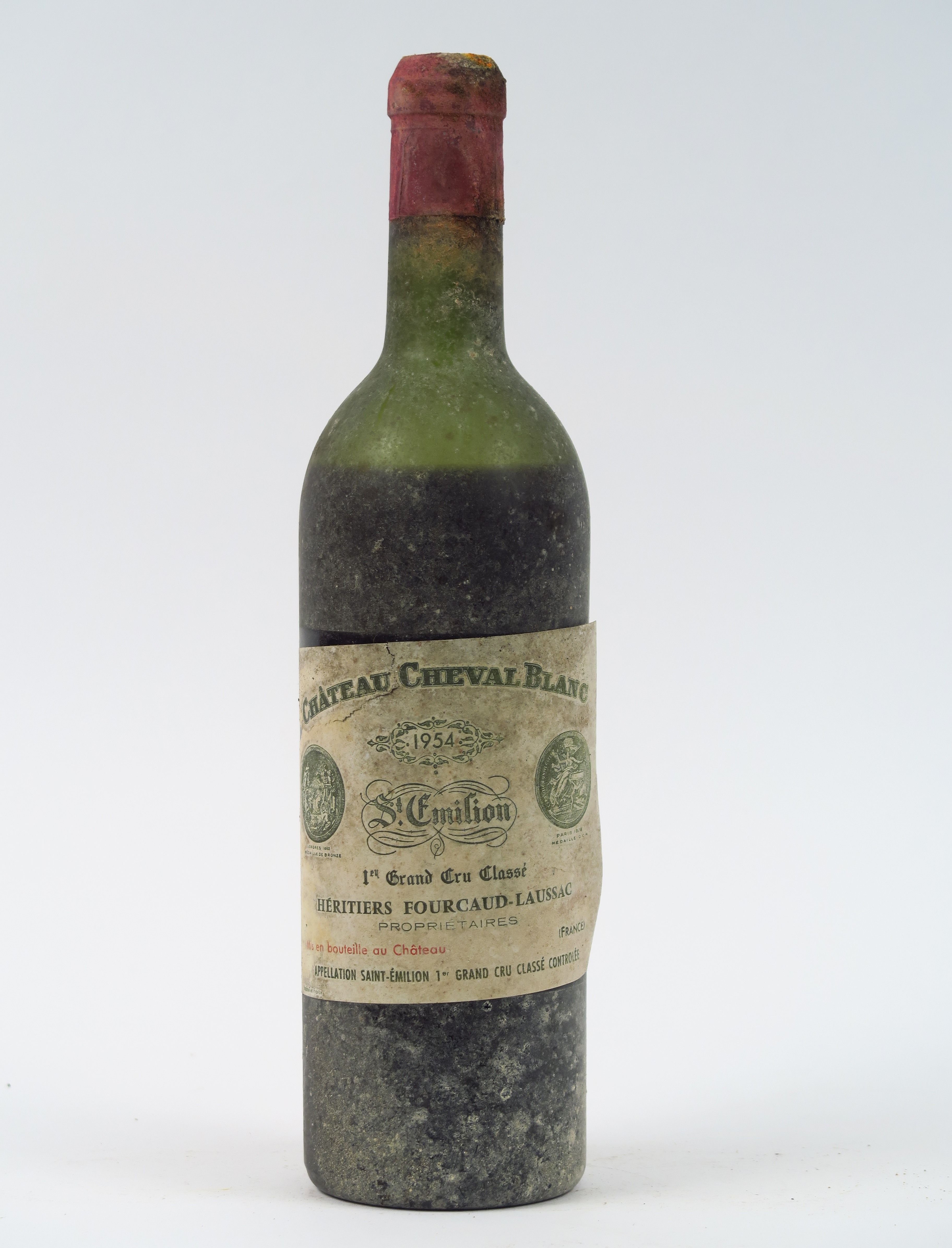 Lot de 1 BOUTEILLE CHÂTEAU CHEVAL BLANC 1er GCC ST EMILION - 1954 - BEP/EF/EL au prix de 70 à 100 € en vente aux enchères par l'hôtel des ventes Primardeco