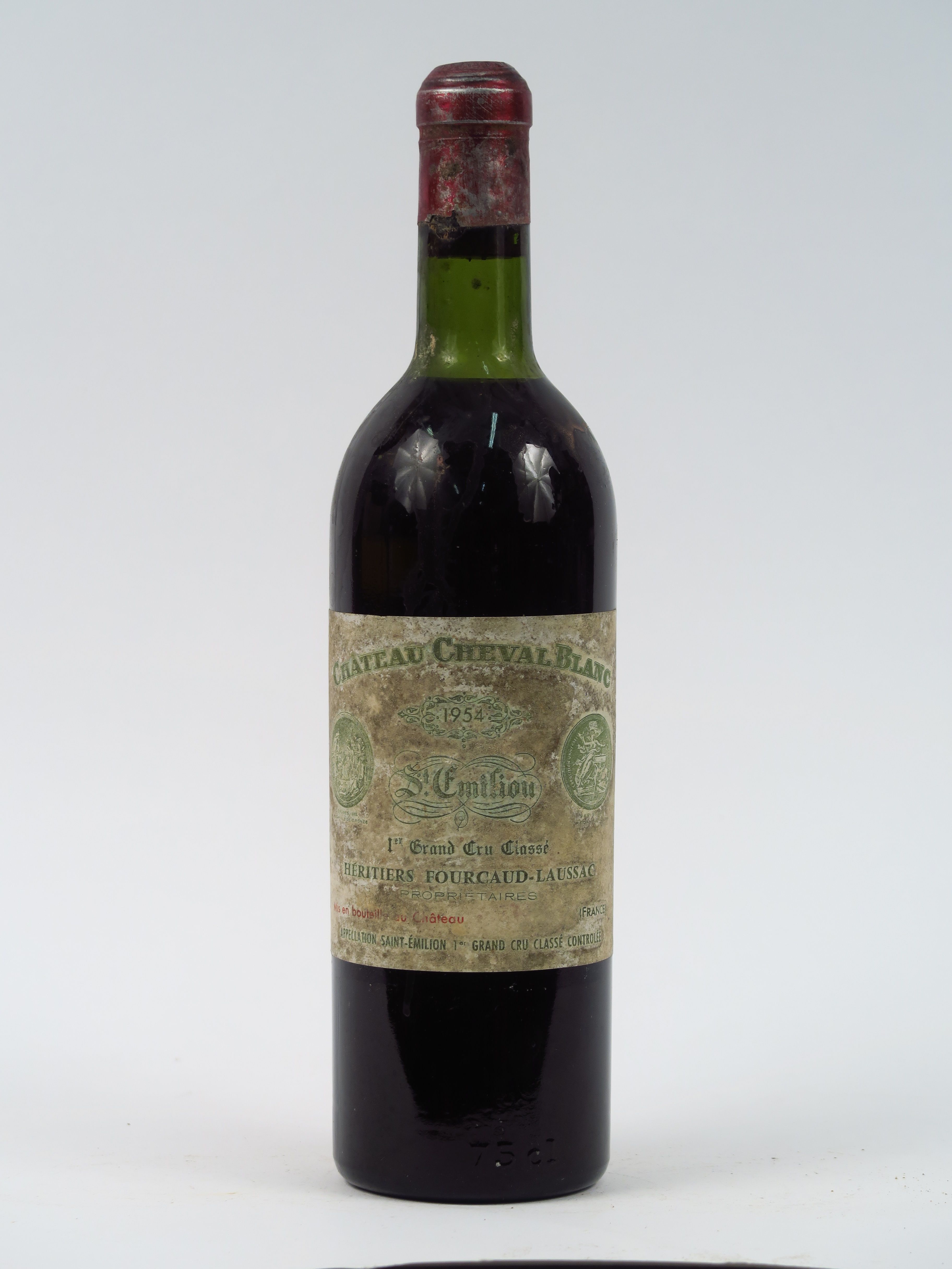 1 BOUTEILLE CHÂTEAU CHEVAL BLANC 1er GCC ST EMILION - 1954 - LB/BOUCHON LEGER POUSSE/EF