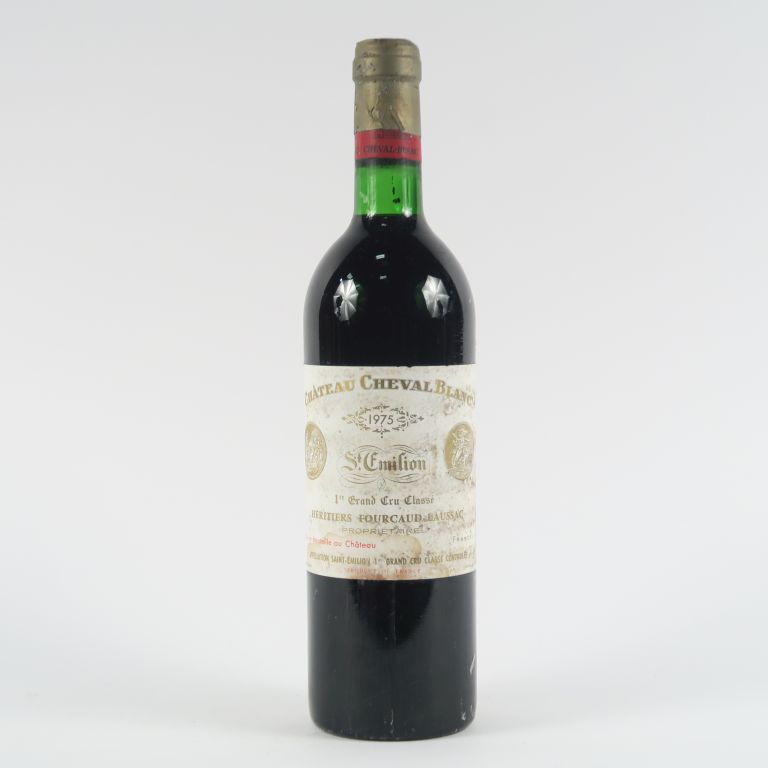 Lot de 1 BOUTEILLE CHÂTEAU CHEVAL BLANC 1er GCC ST EMILION - 1975 - BG/ET au prix de 170 à 190 € en vente aux enchères par l'hôtel des ventes Primardeco