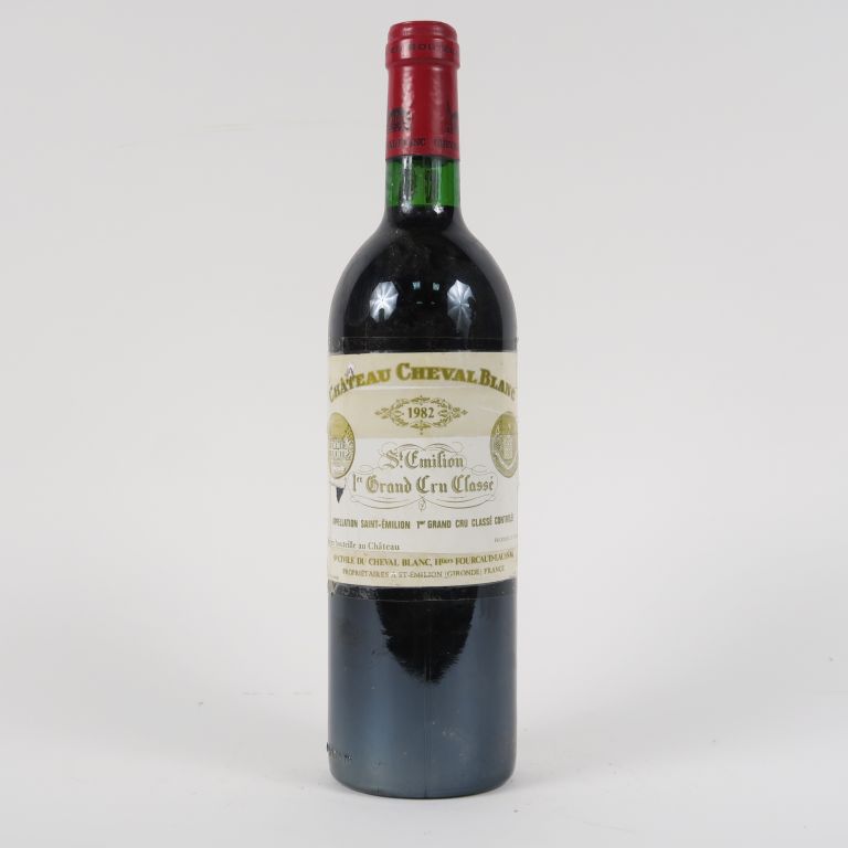 Lot de 1 BOUTEILLE CHÂTEAU CHEVAL BLANC 1er GCC ST EMILION - 1982 - BG+/ET SC au prix de 420 à 440 € en vente aux enchères par l'hôtel des ventes Primardeco