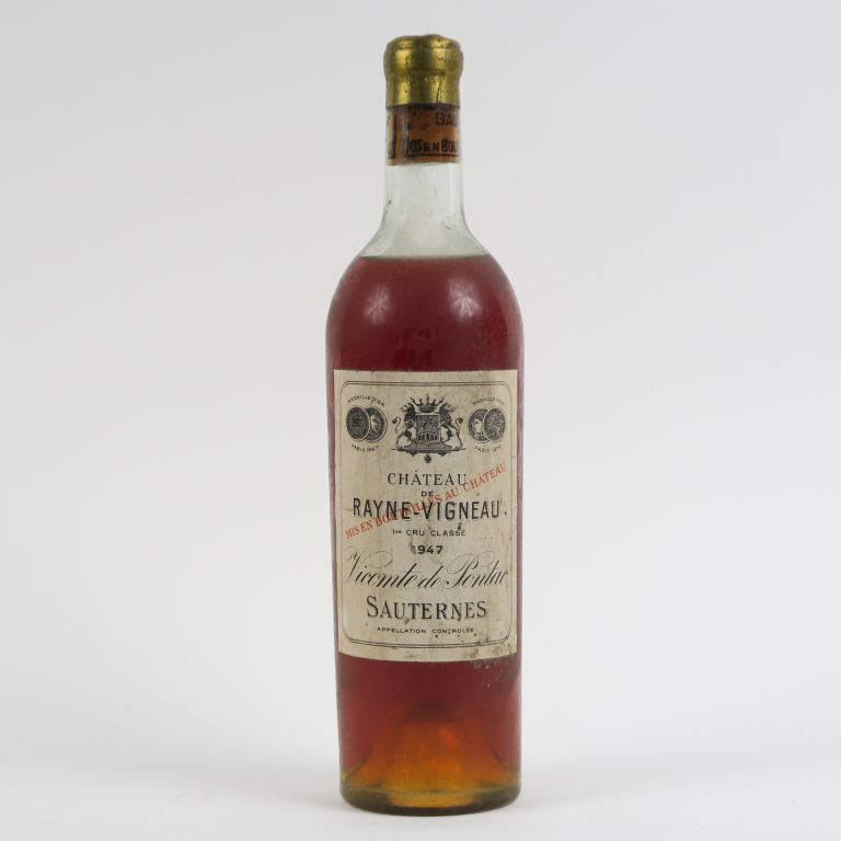 Lot de 1 BOUTEILLE CHÂTEAU DE RAYNE VIGNEAU 1er CC SAUTERNES - 1947 - HEP au prix de 200 à 220 € en vente aux enchères par l'hôtel des ventes Primardeco
