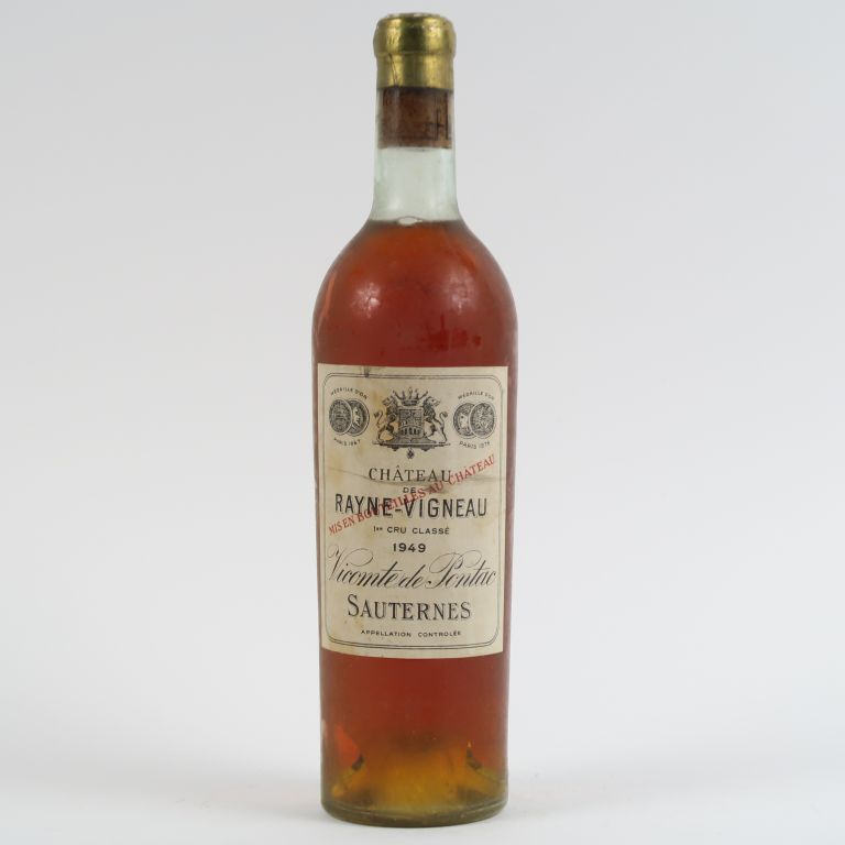 Lot de 1 BOUTEILLE CHÂTEAU DE RAYNE VIGNEAU 1er CC SAUTERNES - 1949 - BG au prix de 220 à 240 € en vente aux enchères par l'hôtel des ventes Primardeco