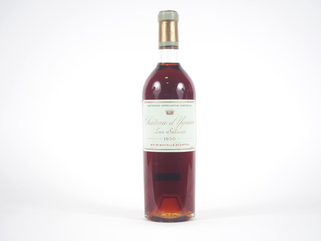 1 BOUTEILLE CHÂTEAU D'YQUEM 1er CCS SAUTERNES - 1950 - BON NIVEAU/CAPS TRÈS LÉGER PLISSÉE