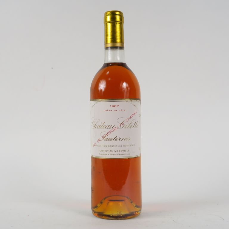 Lot de 1 BOUTEILLE CHÂTEAU GILETTE 'CRÈME DE TÊTE' SAUTERNES - 1967 - BG au prix de 200 à 220 € en vente aux enchères par l'hôtel des ventes Primardeco