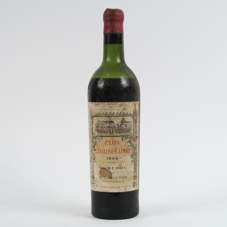 Lot de 1 BOUTEILLE CHÂTEAU L'ÉGLISE CLINET POMEROL - 1944 - BEP/ET au prix de 100 à 120 € en vente aux enchères par l'hôtel des ventes Primardeco