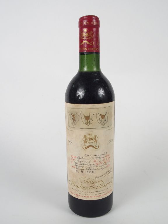 Lot de 1 BOUTEILLE - CHÂTEAU MOUTON ROTHSCHILD 1er GCC PAUILLAC - 1964 - BG-L au prix de 160 à 180 € en vente aux enchères par l'hôtel des ventes Primardeco