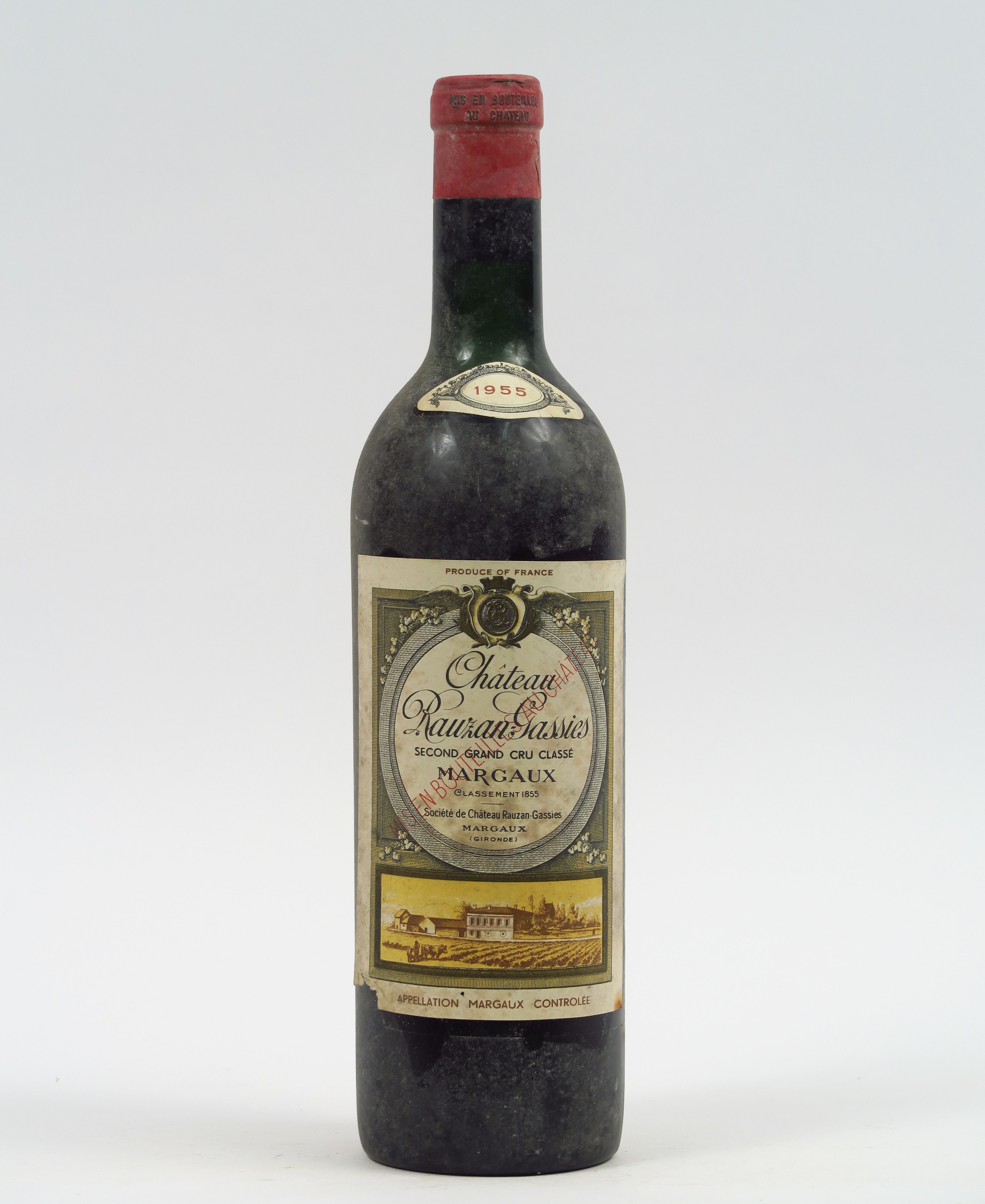 Lot de 1 BOUTEILLE CHÂTEAU RAUZAN GASSIES GCC MARGAUX - 1955 - LB/ETLA au prix de 60 à 80 € en vente aux enchères par l'hôtel des ventes Primardeco