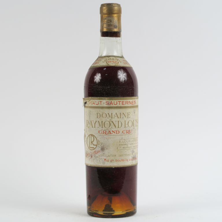 Lot de 1 BOUTEILLE CHÂTEAU RAYMOND LOUIS 'CRÈME DE TÊTE' SAUTERNES - 1949 - B au prix de 150 à 160 € en vente aux enchères par l'hôtel des ventes Primardeco