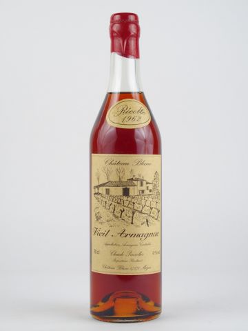 Lot de 1 BOUTEILLE VIEIL ARMAGNAC CHÂTEAU BLANC PINSOLLES - 1962 au prix de 140 à 150 € en vente aux enchères par l'hôtel des ventes Primardeco