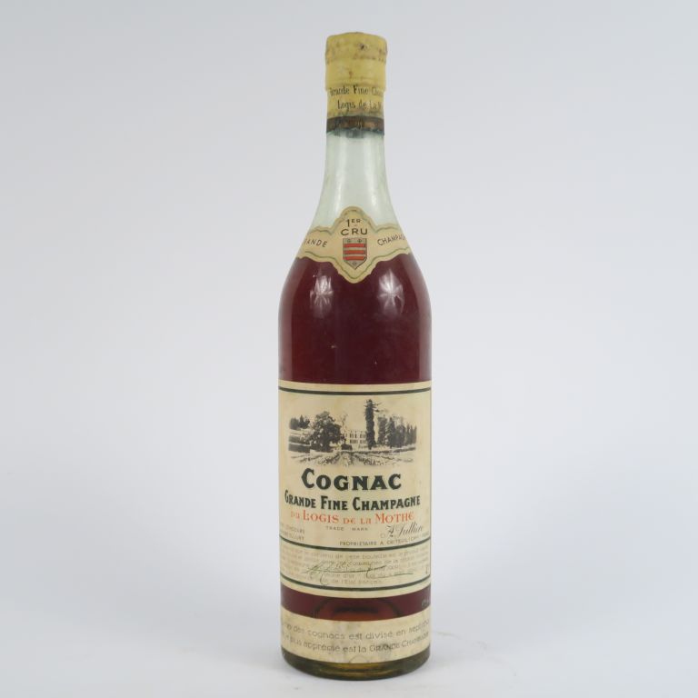 Lot de 1 VIEILLE BOUTEILLE COGNAC GRANDE FINE CHAMPAGNE DU LOGIS DE LA MOTHE au prix de 50 à 60 € en vente aux enchères par l'hôtel des ventes Primardeco