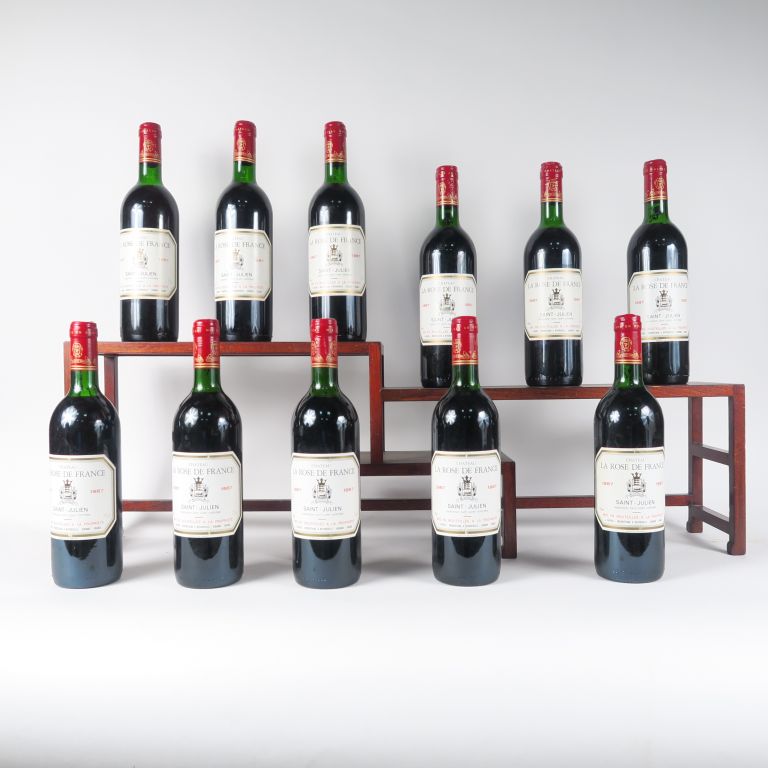Lot de 11 BOUTEILLES CHÂTEAU LA ROSE DE France ST JULIEN - 1987 - LB au prix de 140 à 160 € en vente aux enchères par l'hôtel des ventes Primardeco