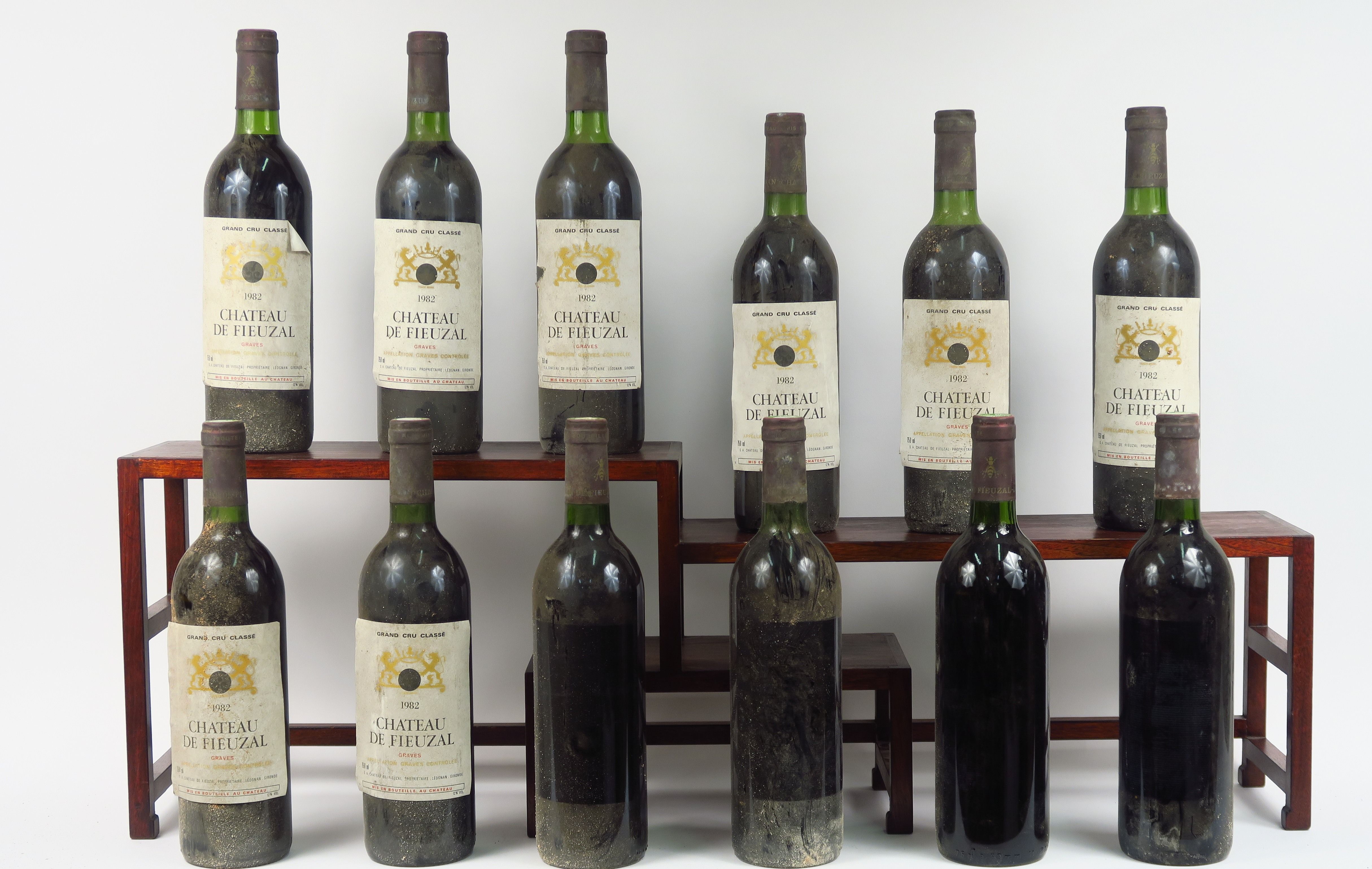 12 BOUTEILLES CHÂTEAU DE FIEUZAL GGC GRAVES - 1982 - 6 BG/6 LB/4 SE/4 PRESUMEES