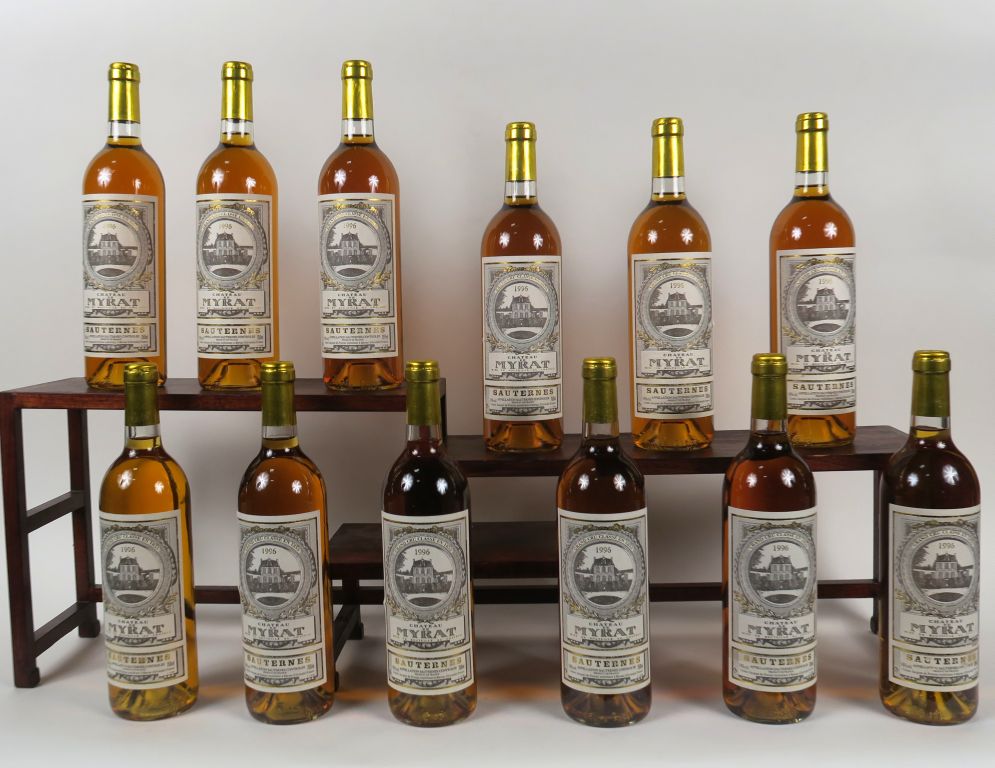 Lot de 12 BOUTEILLES CHÂTEAU DE MYRAT SAUTERNES - 1996 au prix de 130 à 150 € en vente aux enchères par l'hôtel des ventes Primardeco
