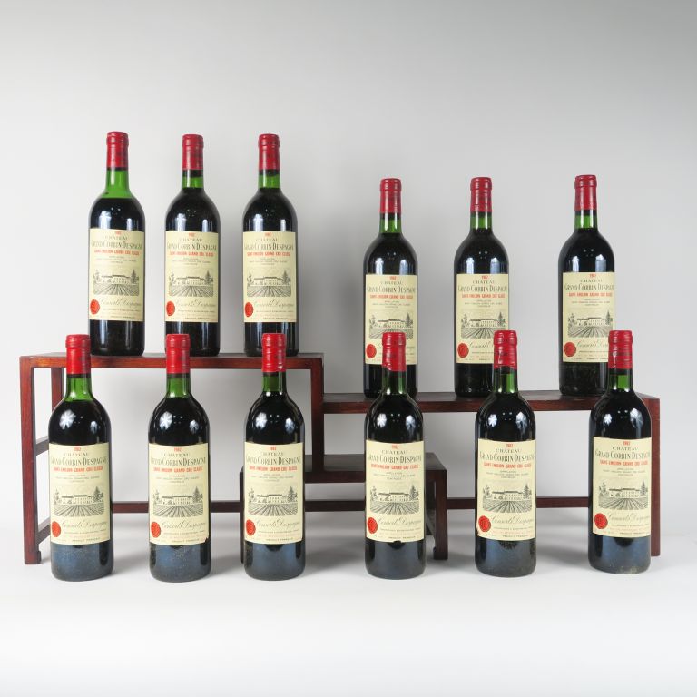 12 BOUTEILLES CHÂTEAU GRAND CORBIN DESPAGNE GC ST EMILION - 1982 - CBO - 10 BG/1 HEP/1 MEP