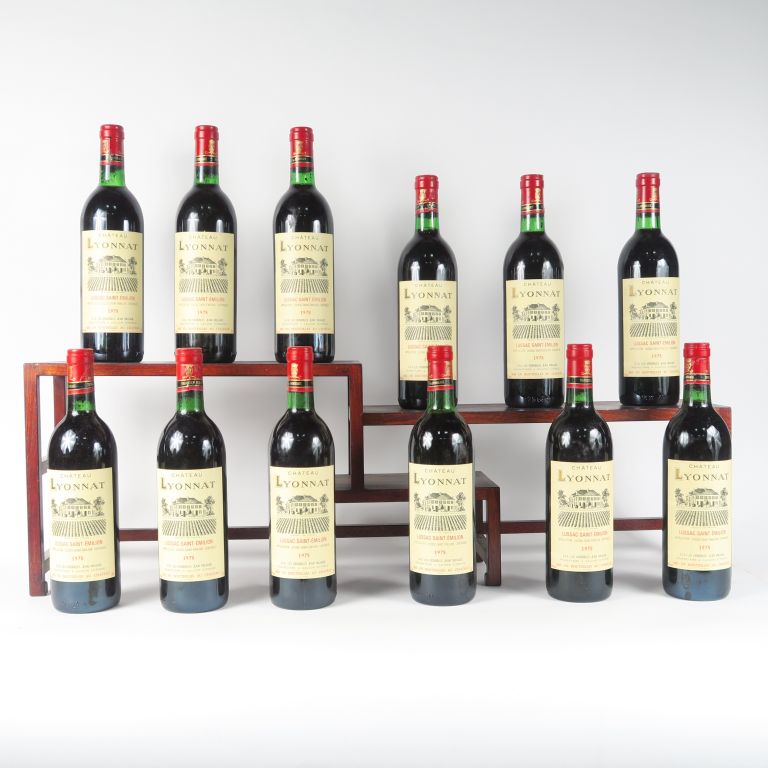 Lot de 12 BOUTEILLES CHÂTEAU LYONNAT LUSSAC ST EMILION - 1978 - BG au prix de 190 à 200 € en vente aux enchères par l'hôtel des ventes Primardeco