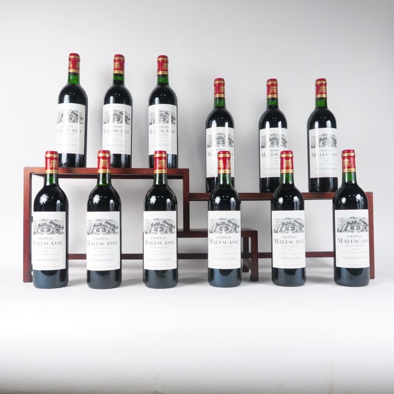 Lot de 12 BOUTEILLES CHÂTEAU MALESCASSE CB HAUT MÉDOC - 1989 - BG au prix de 220 à 250 € en vente aux enchères par l'hôtel des ventes Primardeco