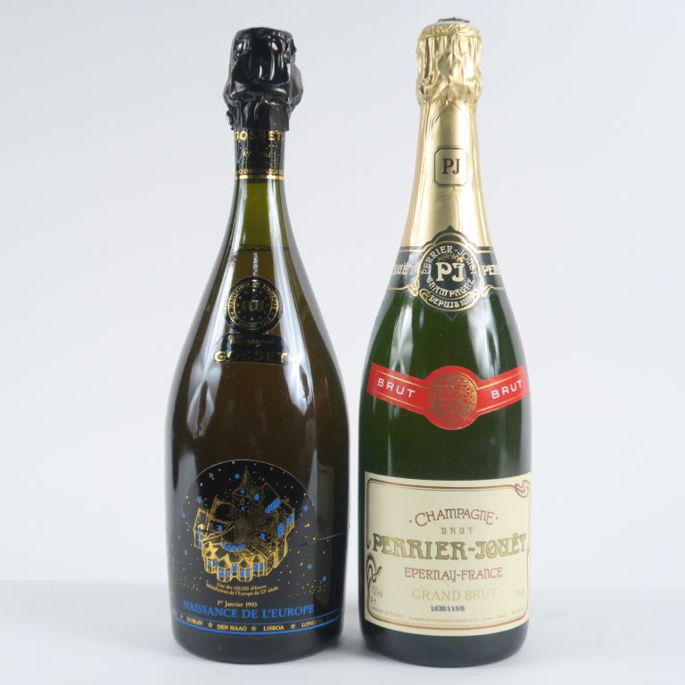 2 BOUTEILLES : 1 PERRIER JOUET 'BRUT' COFFRET - 1 GOSSET CUVÉE SPECIALE 'NAISSANCE DE L'EUROPE' COFFRET