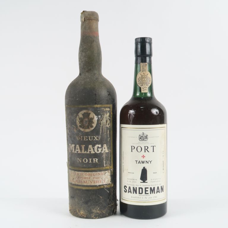2 BOUTEILLES : 1 VIEUX MALAGA NOIR CHAUVIRET BS/CAPS AB - 1 PORTO SANDEMAN
