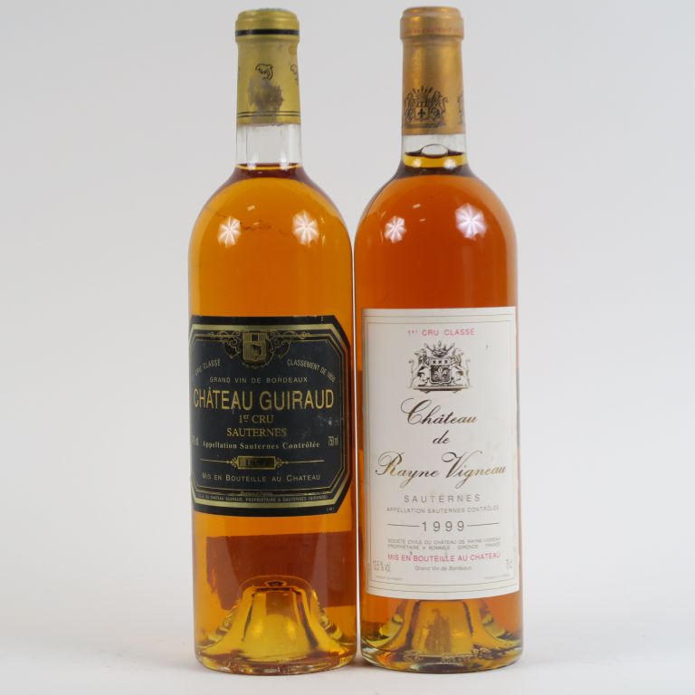 2 BOUTEILLES 1er CC SAUTERNES 1999 : 1 CHÂTEAU RAYNE VIGNEAU - 1 CHÂTEAU GUIRAUD