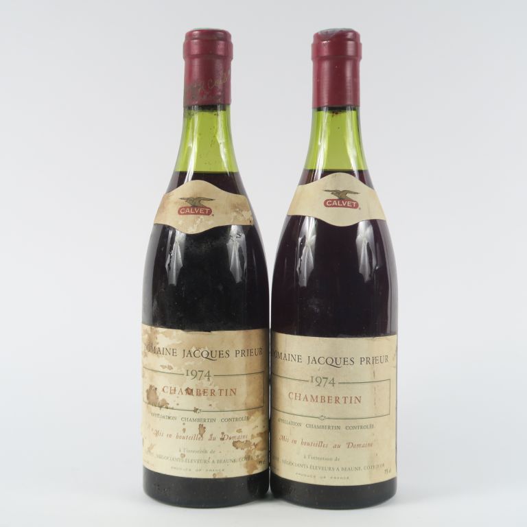 2 BOUTEILLES CHAMBERTIN DOMAINE JACQUES PRIEUR MISE CALVET - 1974 - 3,5 CM/1 ET