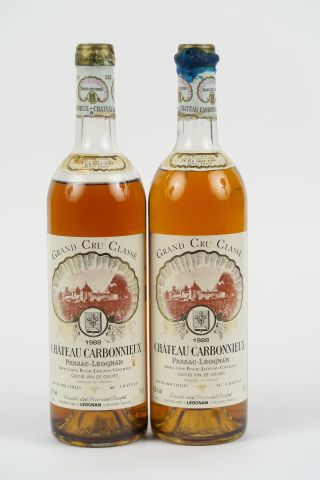 2 BOUTEILLES CHÂTEAU CARBONNIEUX BLANC CC GRAVES - 1988 - 1 MEP/1 BEP/CAPS CORRODEES