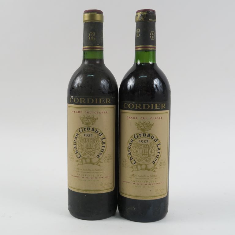 Lot de 2 BOUTEILLES CHÂTEAU GRUAUD LAROSE GCC ST JULIEN - 1982 - BG+ au prix de 360 à 380 € en vente aux enchères par l'hôtel des ventes Primardeco