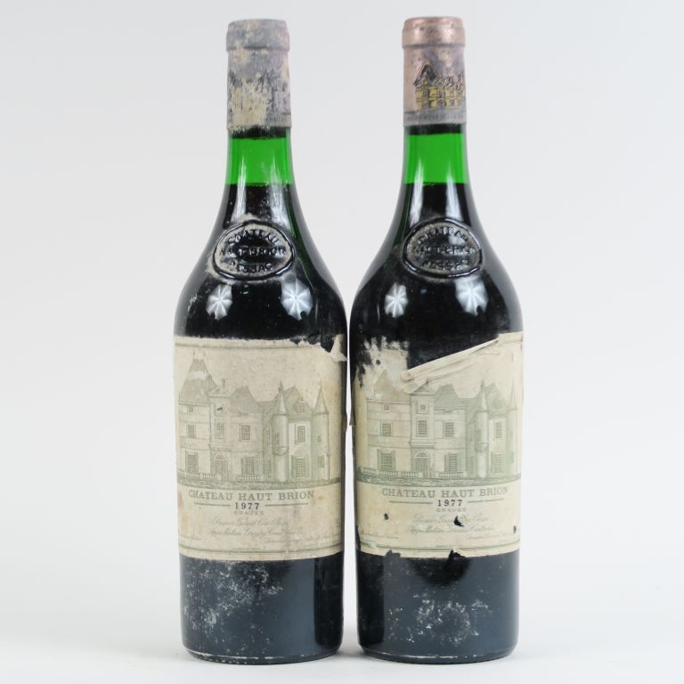 Lot de 2 BOUTEILLES CHÂTEAU HAUT BRION 1er CC GRAVES - 1977 - EA/BS au prix de 400 à 420 € en vente aux enchères par l'hôtel des ventes Primardeco