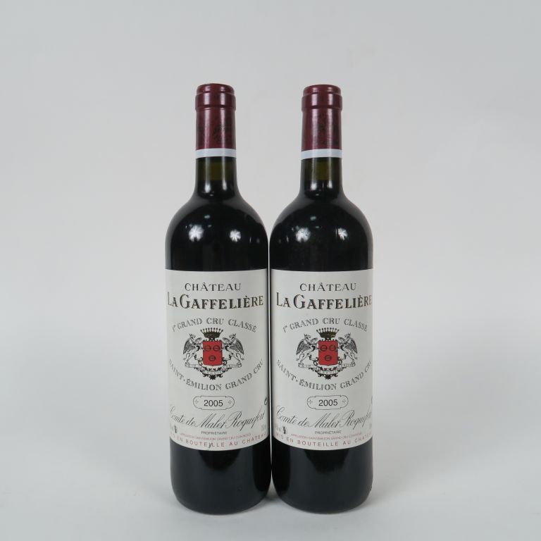 Lot de 2 BOUTEILLES CHÂTEAU LA GAFFELIERE 1er GCC SAINT EMILION - 2005 au prix de 100 à 130 € en vente aux enchères par l'hôtel des ventes Primardeco