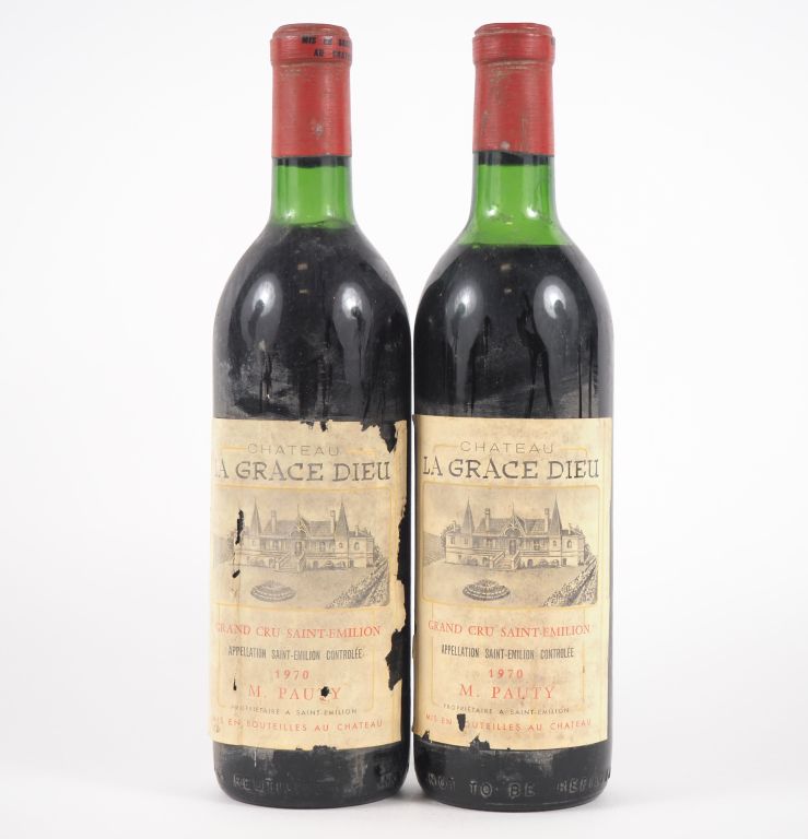 2 BOUTEILLES CHÂTEAU LA GRACE DIEU GC ST ÉMILION - 1970 - 1 BG/1 HEP/EA